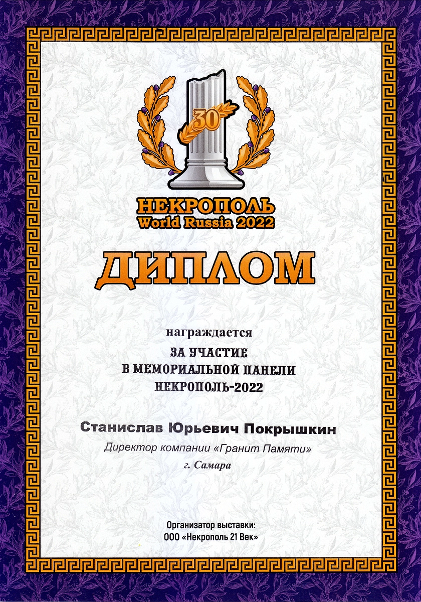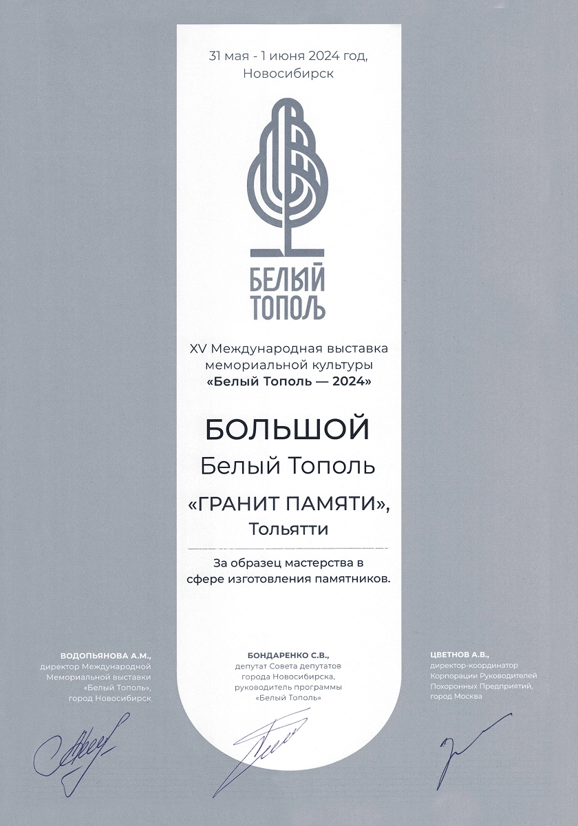 Компания была основана в 1998 году Юрием Григорьевичем Покрышкиным и изначально имела другое название. Свое нынешнее имя — «Гранит Памяти» — она получила в 2019 году, когда руководство принял его сын, Станислав Юрьевич. Вместе с командой он провёл ребрендинг и вывел компанию на новый уровень развития. Более 25 лет мы производим в Тольятти памятники из натурального гранита и мрамора — камня, который сохраняет память поколений. За это время компания значительно выросла: открыты новые филиалы и запущена франшиза, позволяющая распространять наш опыт в других регионах. Сегодня «Гранит Памяти» — узнаваемый бренд с широкой сетью партнёров.