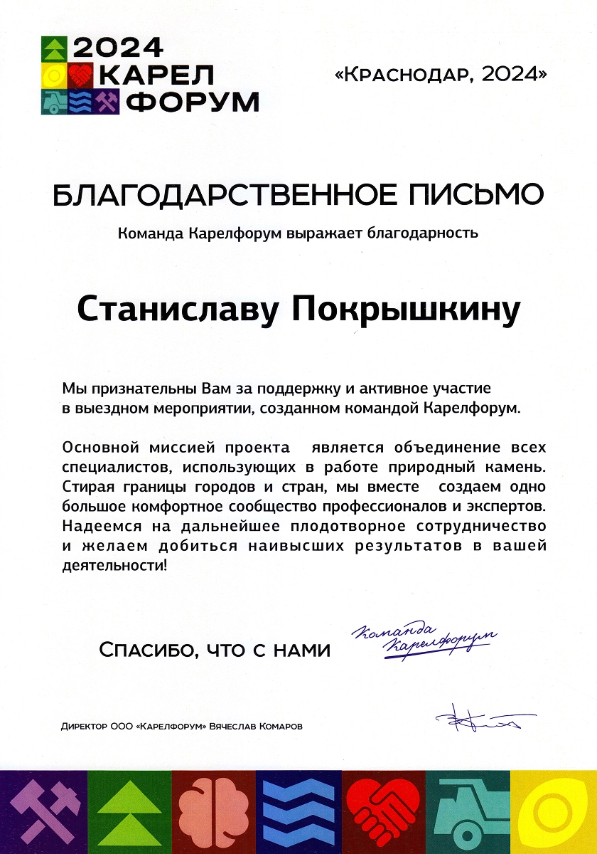 Ежегодные экспоненты профильных выставок в России «Некрополь», «Карелфорум», «Белый Тополь», «Ритуальные услуги. Камнеобработка» и в Белоруссии «Мемориал. Камнеобработка». Деятельность компании отмечена отраслевыми наградами: победители в номинации «медийность» в конкурсе «Золотая медаль Некрополь 2021», победители народного голосования на звание «Лучшая франшиза 2020», обладатели «Золотого скарпеля», номинанты на звание «Лицо Отрасли Некрополь 2020». Сотрудница компании признана «Самой обаятельной в каменной отрасли 2022».